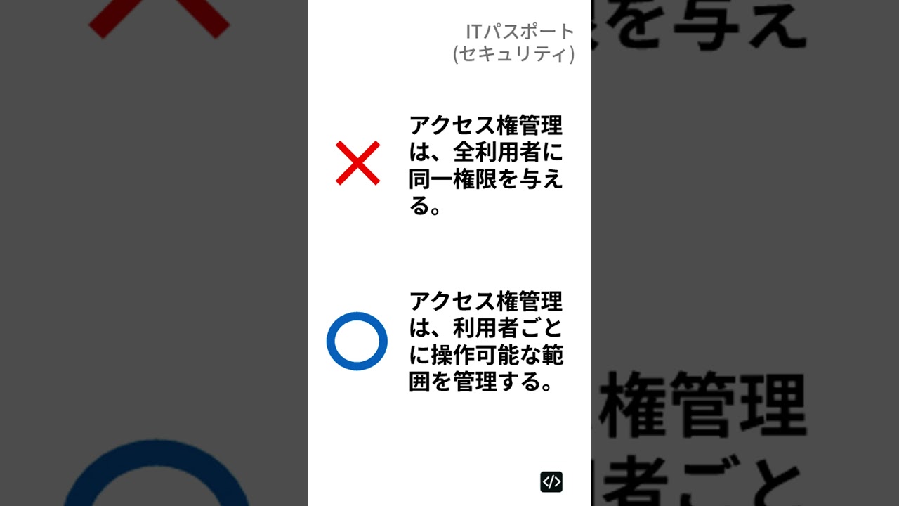 【10秒読解|ITパスポート】セキュリティ_044 ITパスポート(iパス) X LINE コピー 2026.03.182026.03.19 ITパスポートの重要用語を10秒で確認。 スキマ時間の最速復習用。