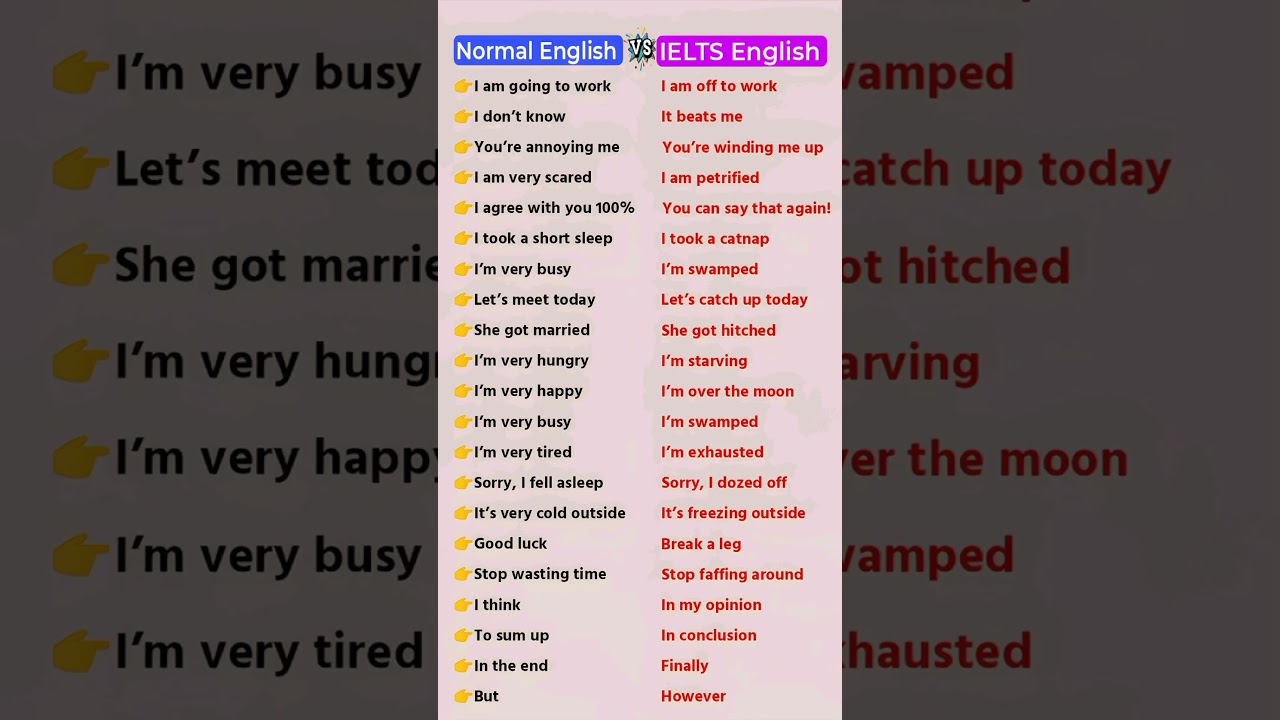 In this video, you’ll learn how to upgrade your basic English into advanced and impressive English used in IELTS and daily conversation.