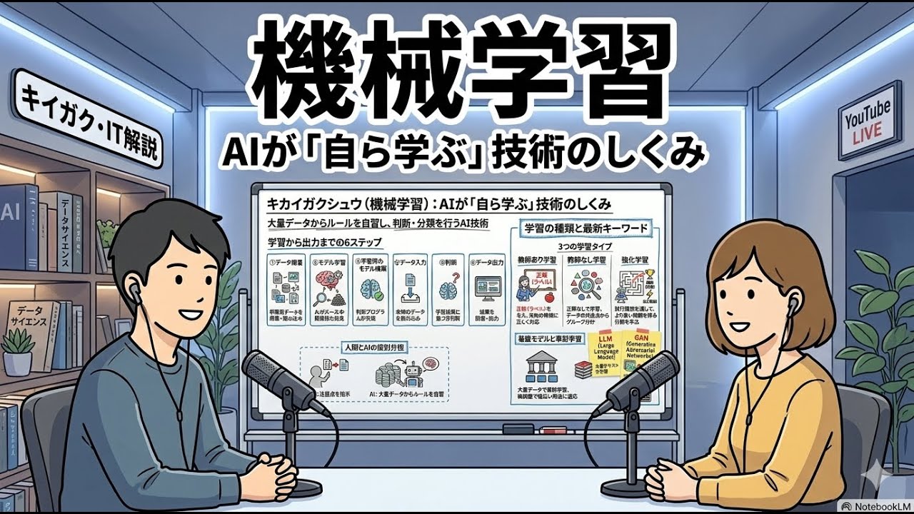 この動画では、AIの中核技術である「機械学習」について、その基本概念から具体的なプロセス、そして最新のAIモデルまでをわかりやすく解説します。