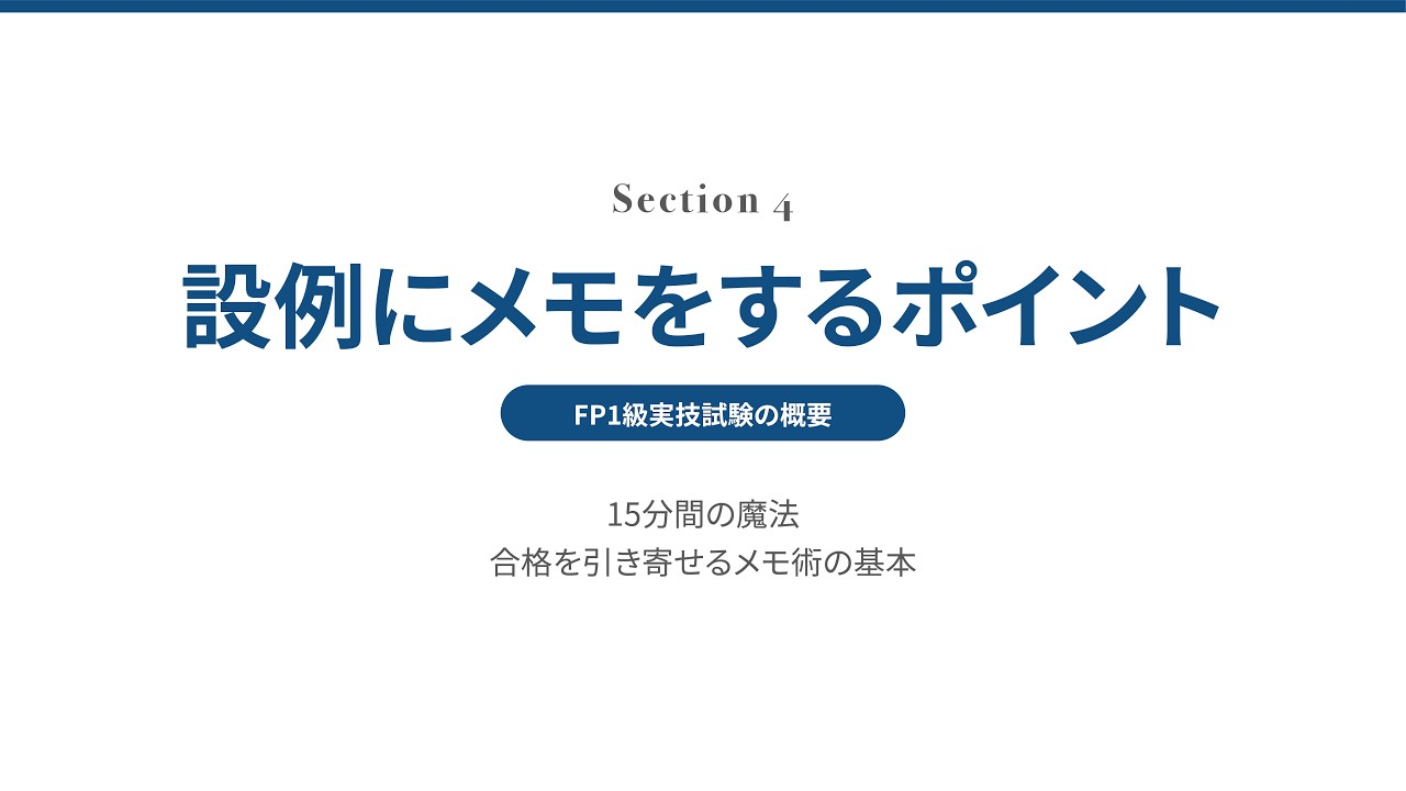【FP1級実技試験】サンプル動画|続きは講座で詳しく解説|第1章 -section4-|設例にメモをするポイント
