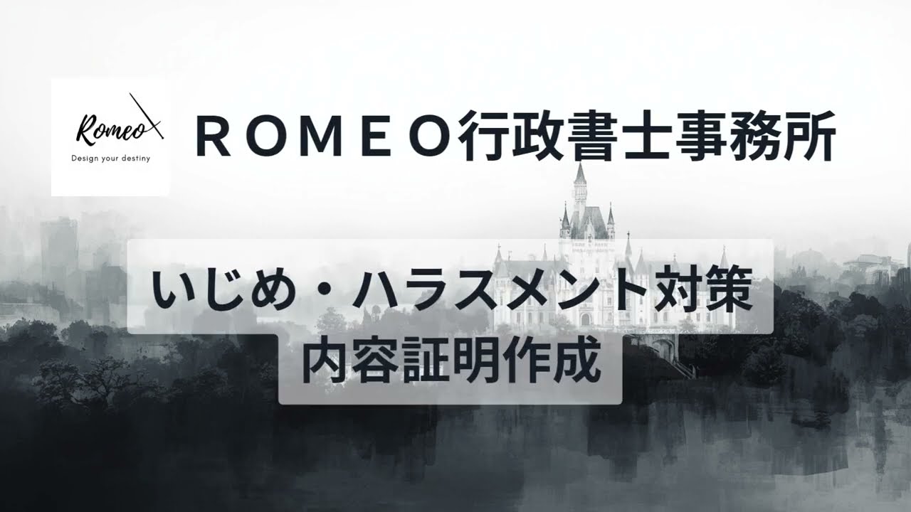 いじめ・ハラスメント対策の内容証明作成についてお困りの方は、ROMEO行政書士事務所にお気軽にお問い合わせください。