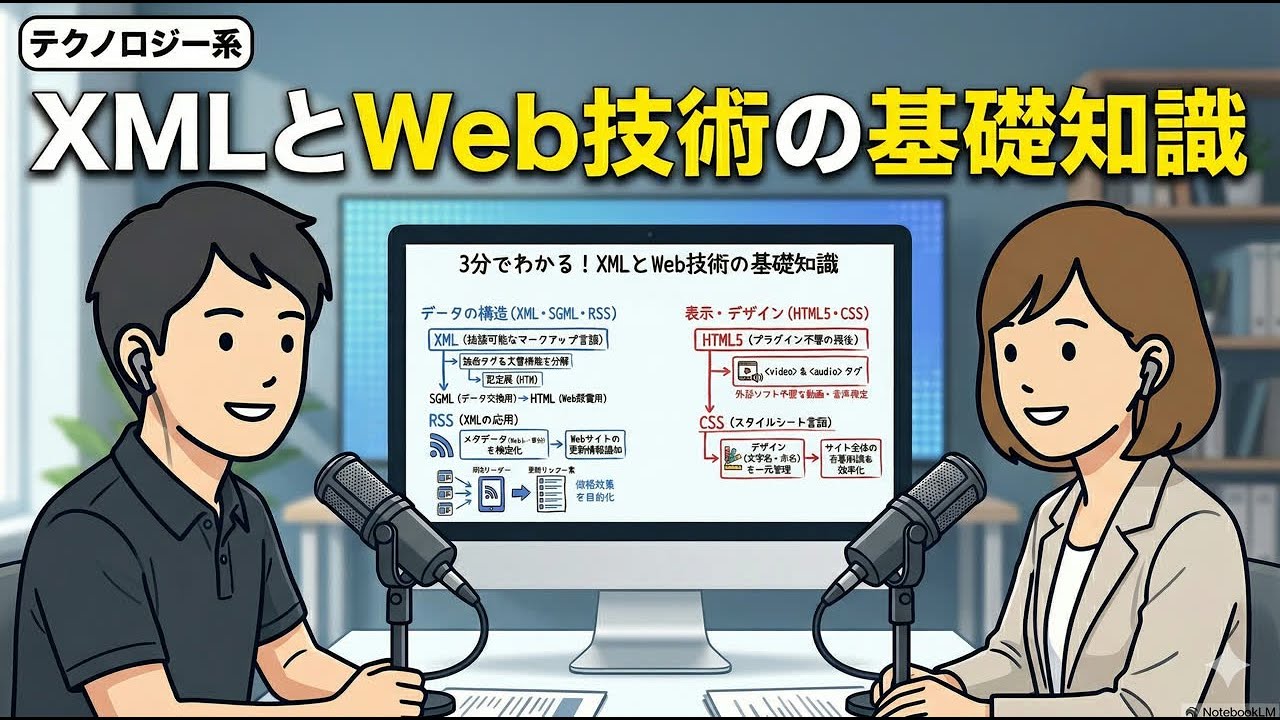 この動画では、Web技術の進化の歴史をSGML、HTML、XML、RSS、そしてCSSといった主要なマークアップ言語やスタイルシート言語の視点から紐解きます。