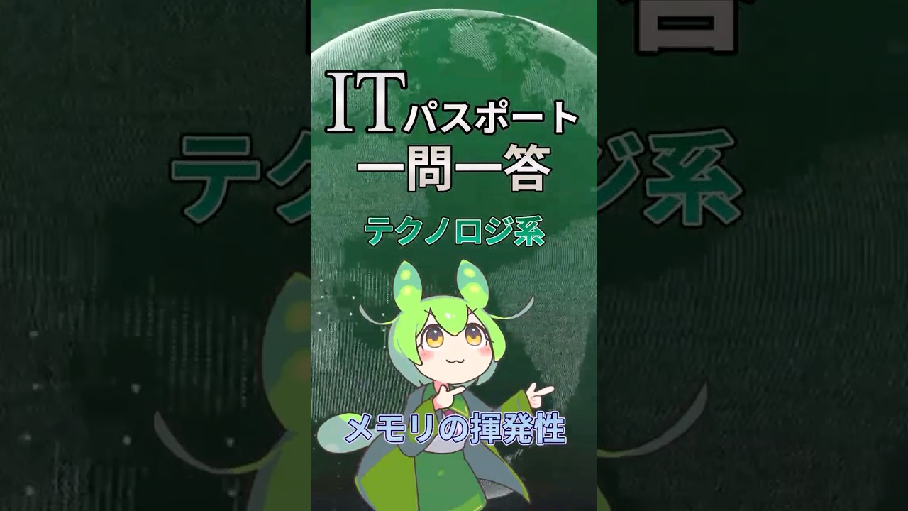 【ITパスポート】過去問一問一答【テクノロジ系】コンピュータ構成要素|メモリの揮発性 #shorts #itパスポート #ずんだもん