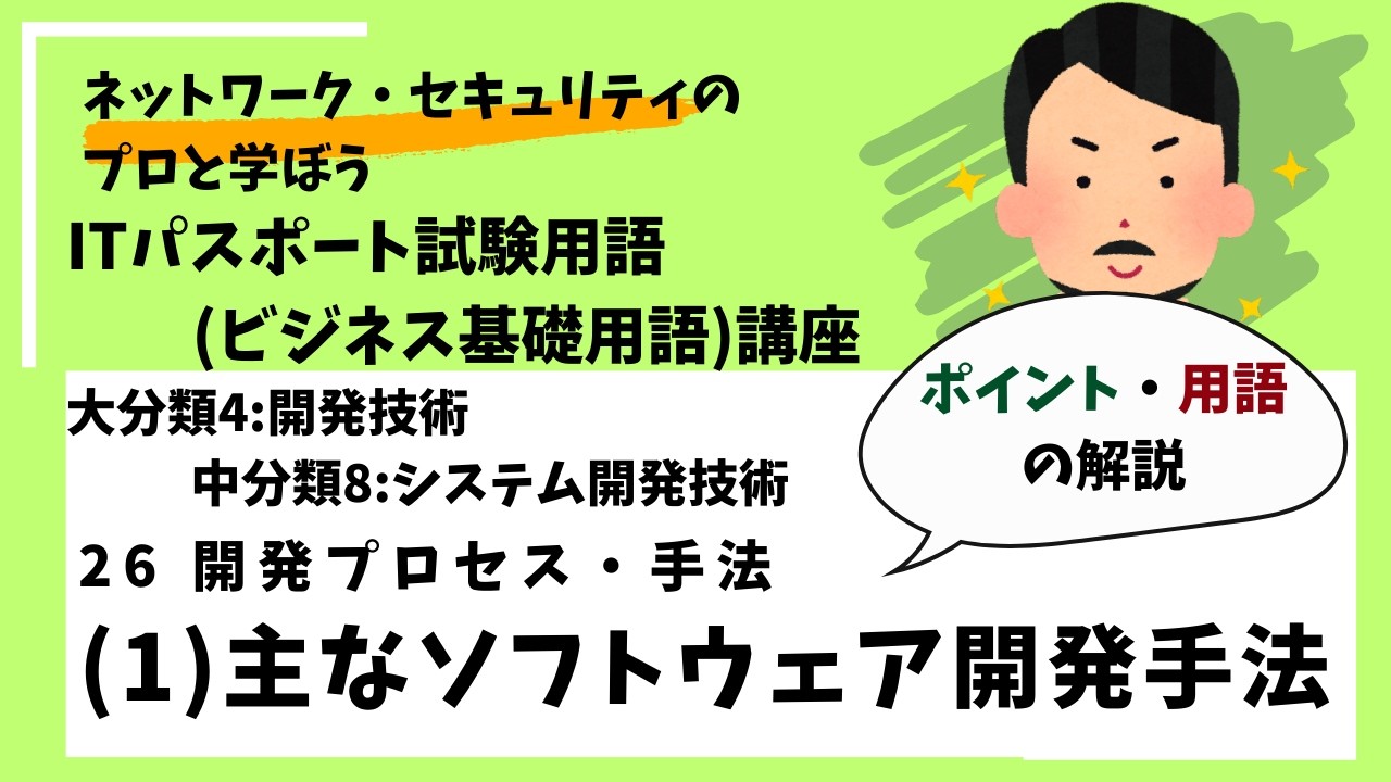 26-(1)主なソフトウェア開発手法【ポイント・用語解説】 /ITパスポート講座用語(ビジネス基礎用語)講座