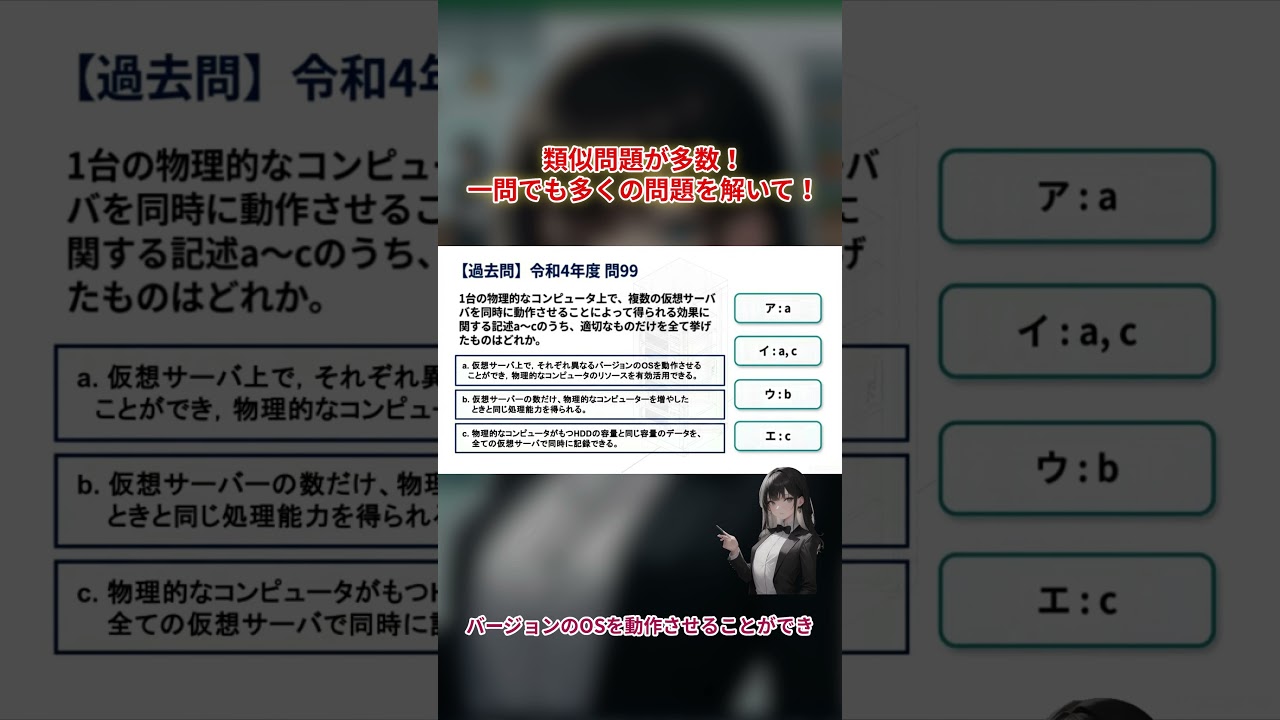 【問99】ITパスポート過去問令和4年分 仮想サーバ #itパスポート #サーバー #過去問