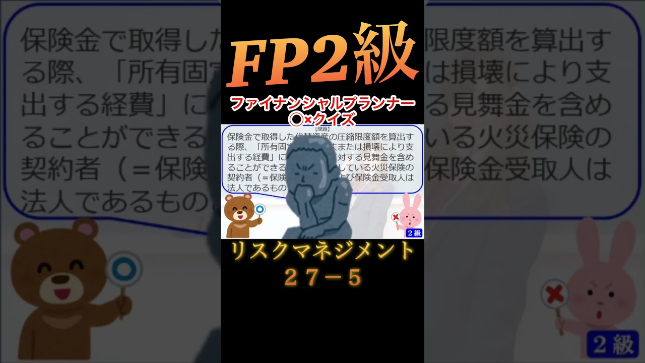 【FP2級】 リスクマネジメント27-5 #ファイナンシャルプランナー#◯× クイズ#マルバツ#FP#3級#2級#教育#簿記#金融#株式#税金#保険#猫#ライフ#犬#相続#過去問#1分で知識アップ ファイナンシャルプランナー(FP2級・3級) X LINE コピー 2026.03.28