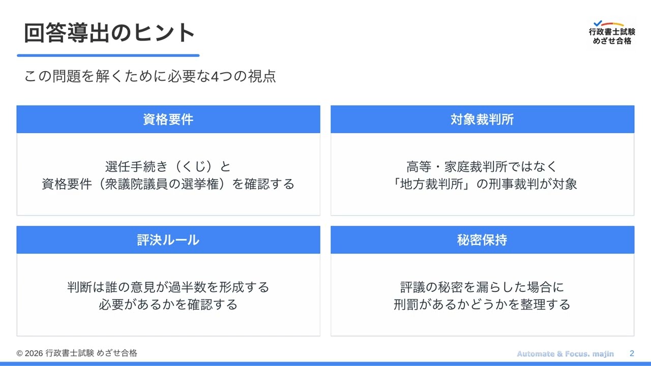 令和7年度 行政書士試験 問題2(憲法・基礎法学)