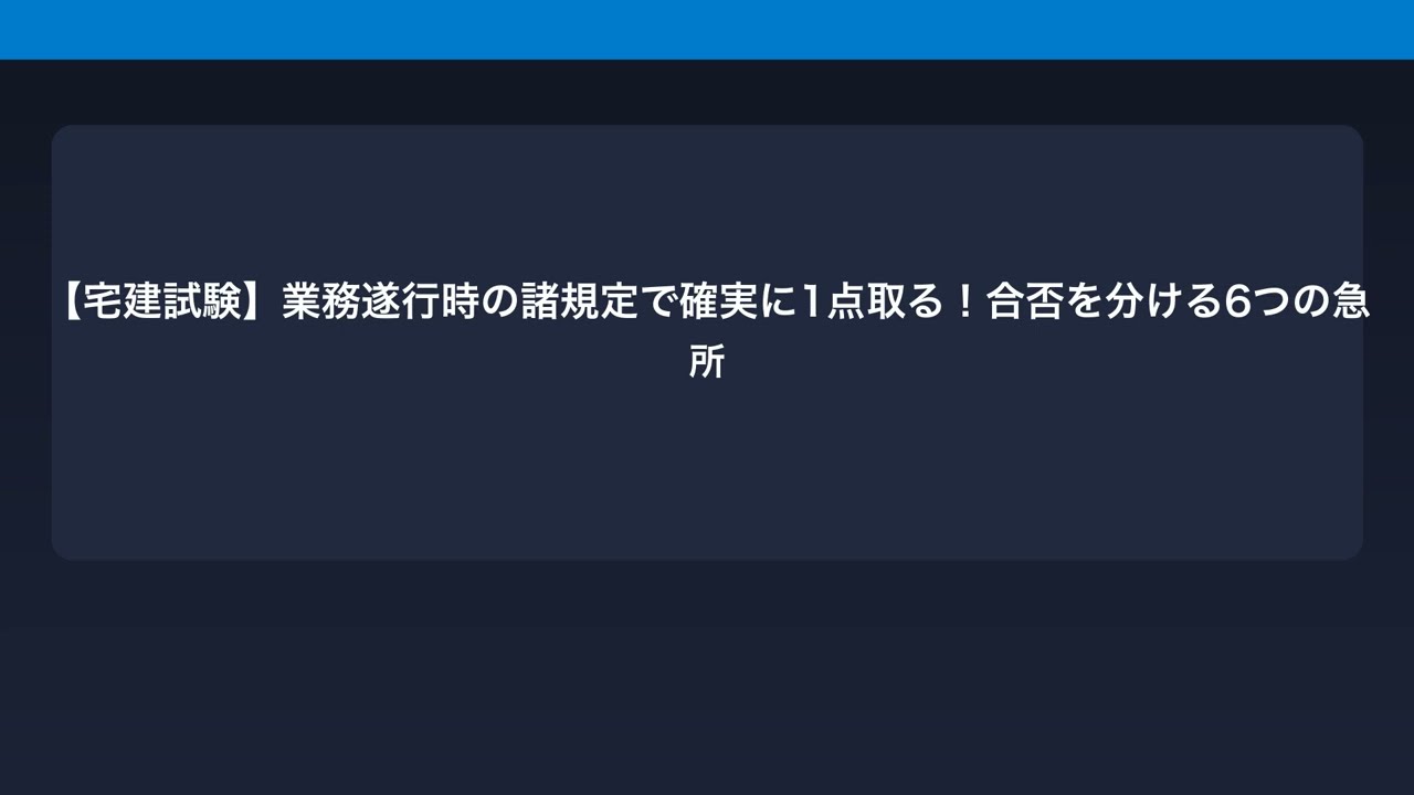 ※ 本動画の過去問は、一般財団法人 不動産適正取引推進機構が公表する宅地建物取引士資格試験の問題を基に、解説を加えたものです。正確性には十分注意しておりますが、最新の法改正等は公式情報をご確認ください。