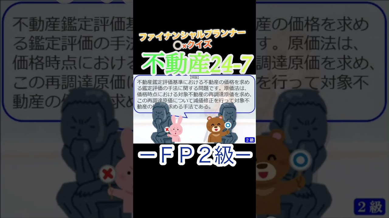 【FP2級】不動産24-7 #ファイナンシャルプランナー#◯× クイズ#マルバツ#FP#3級#2級#教育#簿記#金融#株式#税金#保険#猫#ライフ#犬#相続#過去問#1分で知識アップ ファイナンシャルプランナー(FP2級・3級) X LINE コピー 2026.04.05