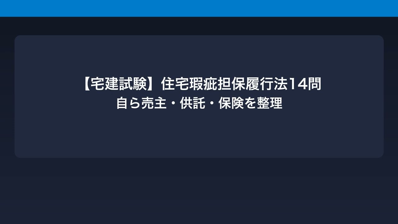 【宅建試験】住宅瑕疵担保履行法14問|自ら売主・供託・保険を整理