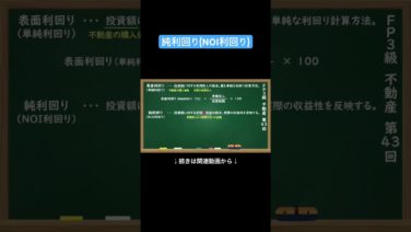 ファイナンシャルプランナー(FP2級・3級) 【公式切り抜き】純利回り(NOI利回り)#FP3級 #簿記の教室メイプル #さいとう先生 #ファイナンシャルプランナー #不動産講座 #不動産知識 #不動産投資 #住宅ローン #不動産評価 #FP資格
