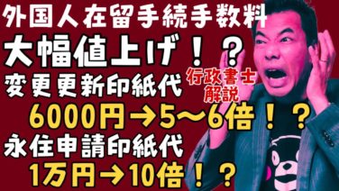 行政書士 【行政書士解説】ビザ手続き(在留手続き)手数料大幅引き上げ?😵更新変更は5〜6倍!?永住に関しては10倍!?