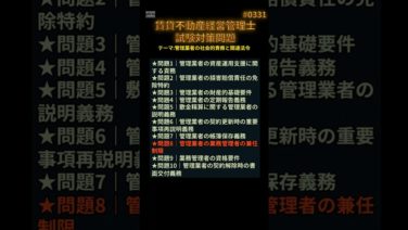 ※ テキスト・参考書のテーマを基に問題を作成しておりますので、類似の問題の出題も度々ありますが、それだけ重要項目と捉えて頂ければ幸いです。賃貸不動産経営管理士試験に挑むあなたへ──本試験で“差がつく”超難問を完全解説! この動画では、受験生...