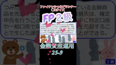 ファイナンシャルプランナー(FP2級・3級) 【FP2級】 金融資産運用25-9 #ファイナンシャルプランナー#◯× クイズ#マルバツ#FP#3級#2級#教育#簿記#金融#株式#税金#保険#猫#ライフ#犬#相続#過去問#1分で知識アップ